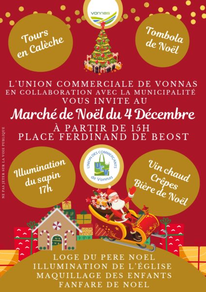 Au programme : tour en calèche, loge du père Noël, maquillage des enfants, crêpes et vin chaud, fanfare et illumination du sapin de Noël (à 17h).