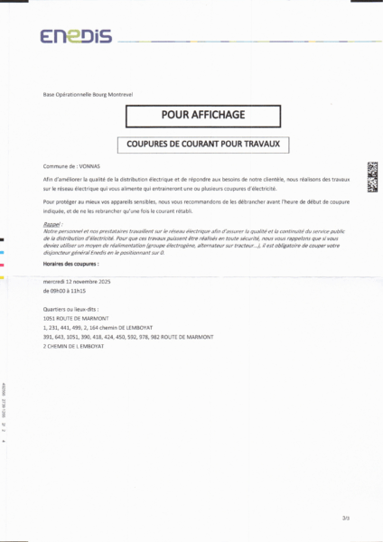 Pour votre sécurité et protéger vos appareils sensibles, nous vous recommandons de les débrancher avant l’heure du début de la coupure, et de ne les rebrancher qu’une fois le courant rétabli.