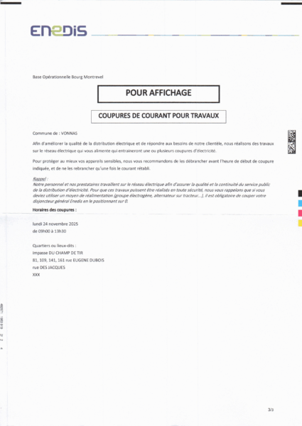Pour votre sécurité et protéger vos appareils sensibles, nous vous recommandons de les débrancher avant l’heure du début de la coupure, et de ne les rebrancher qu’une fois le courant rétabli.