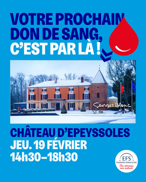 L’établissement français du sang vous accueille le jeudi 19 février, de 14h30 à 18h30, pour un don de sang au château d’Epeyssoles à Vonnas.
