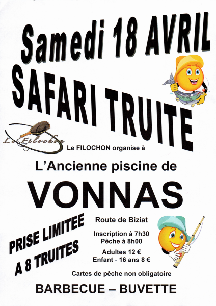 Le Filochon vous donne rendez-vous le samedi 18 avril, à l’Ancienne piscine de Vonnas, pour son Safari Truite.