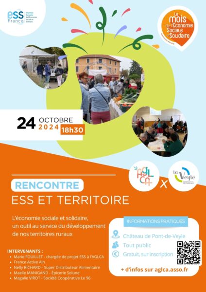 Au programme, présentation de l’Économie Sociale et Solidaire (principes, modèles économiques, financements, …), état des lieux sur le territoire de la Veyle et plusieurs témoignages.