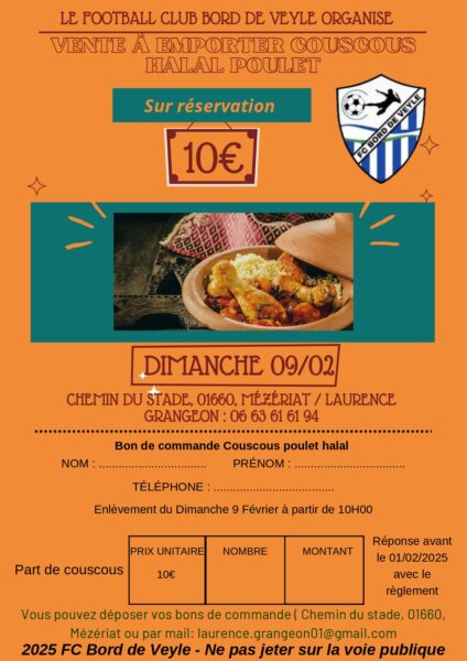 Le FCBV organise une vente de couscous à emporter le dimanche 9 février 2025.