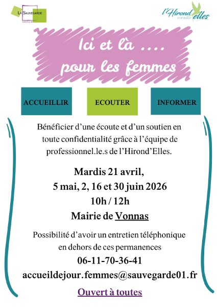 N’hésitez pas à prendre contact avec l’association si besoin : accueildejour.femmes@sauvegarde01.fr ou 06 11 70 36 41.